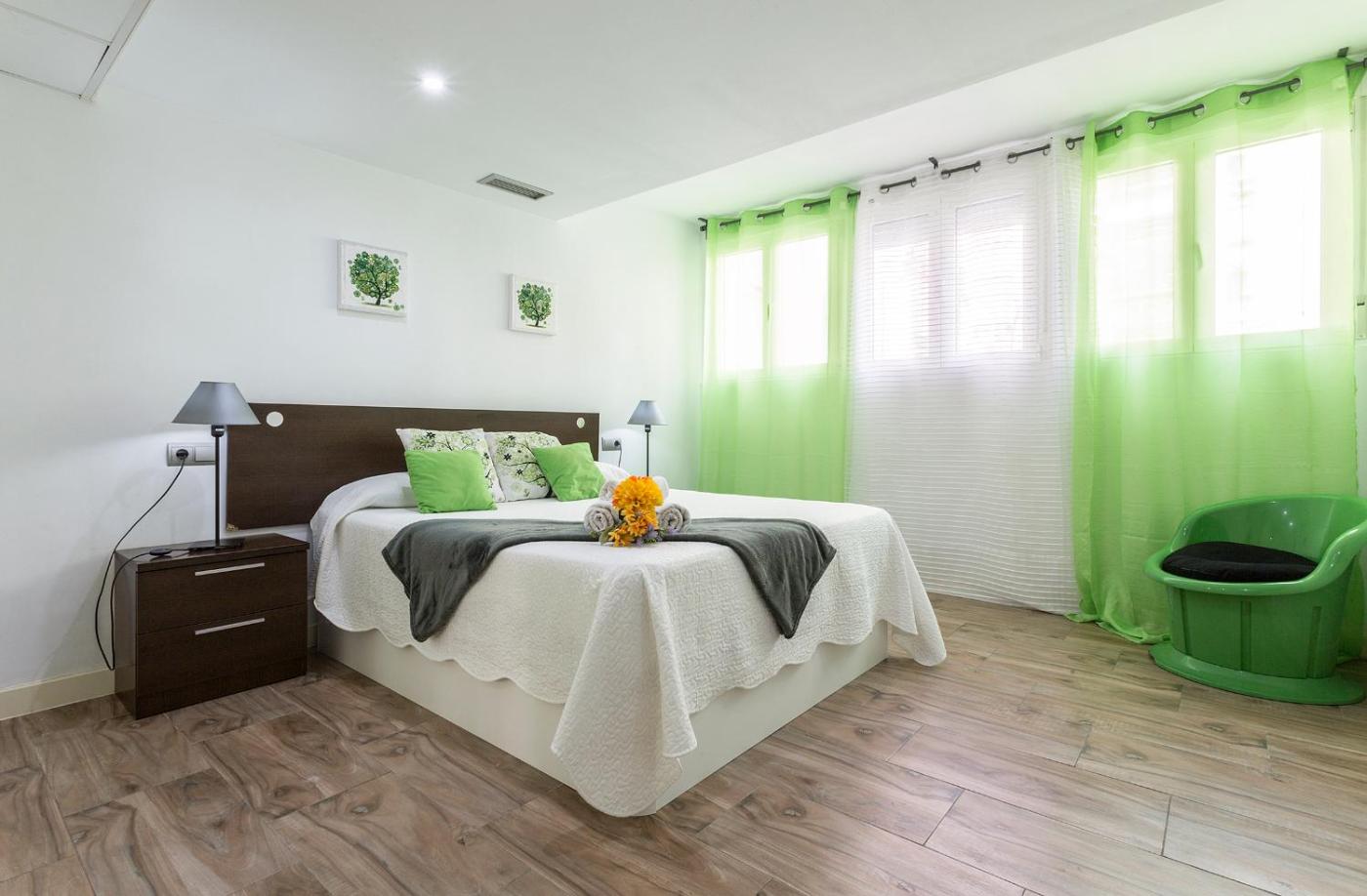 Apartamento Superior. Este apartamento es amplio y dispone de sala de estar, 4 dormitorios independientes y 3 baños con ducha y artículos de aseo gratuitos. La cocina está completamente equipada con placa de cocina, lavavajillas, utensilios de cocina y horno. El apartamento tiene aire acondicionado, zona de estar con TV de pantalla plana, lavadora, paredes insonorizadas, cafetera y zona de comedor. El alojamiento dispone de 8 camas.