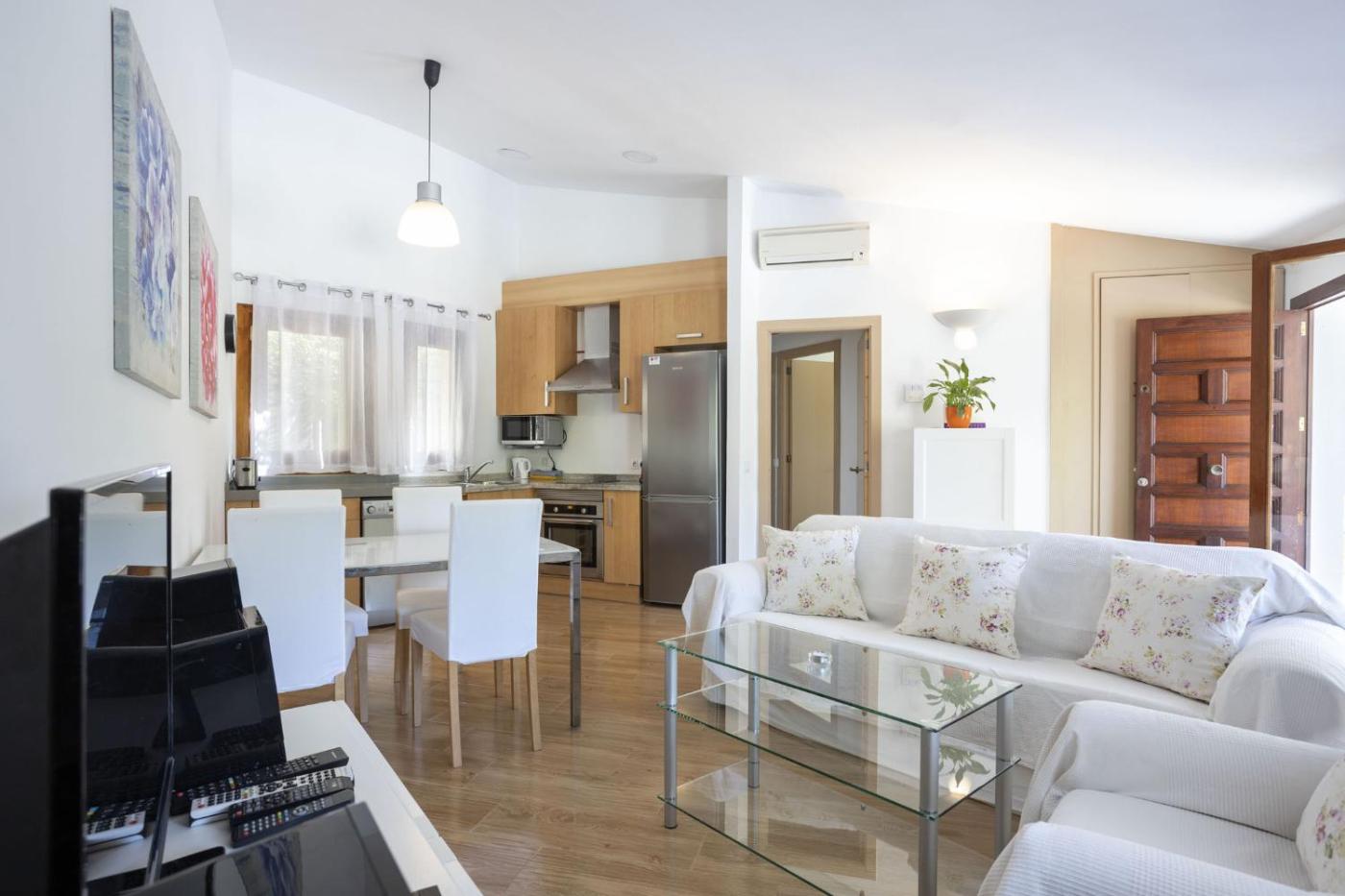 La villa tiene 2 dormitorios, 1 baño, ropa de cama, toallas, TV con canales vía satélite, cocina totalmente equipada y terraza con vistas a la piscina.