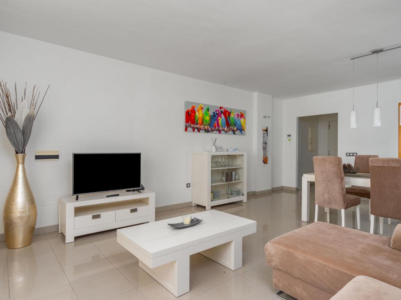 Apartamento. This spacious apartment comprises 2 bedrooms, kitchen, a terrace and 2 bathrooms with a bath. In the well-fitted kitchen, guests will find a stovetop, a refrigerator, a dishwasher and kitchenware. This apartment features air conditioning, a washing machine, a TV and a patio. The unit offers 3 beds.