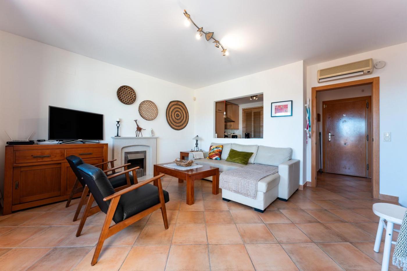 El apartamento tiene 2 dormitorios, 2 baños, ropa de cama, toallas, TV, cocina totalmente equipada y terraza con vistas al mar.