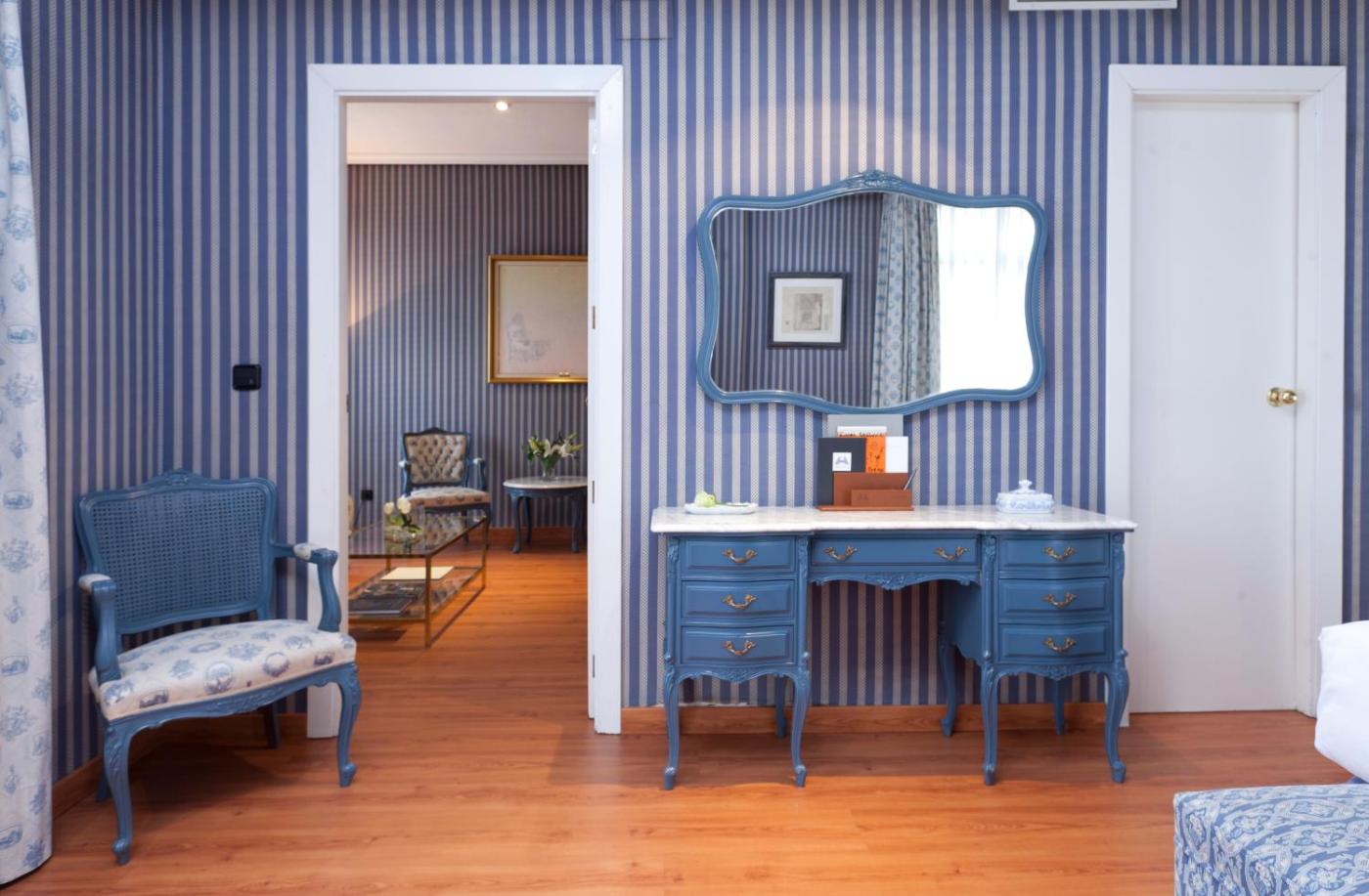 Suite. La habitación doble es amplia y cuenta con aire acondicionado, minibar y baño privado con bañera y ducha. La habitación doble cuenta con suelo de parquet, zona de estar con TV vía satélite de pantalla plana, cafetera, armario y caja fuerte. La unidad ofrece 1 cama. ;