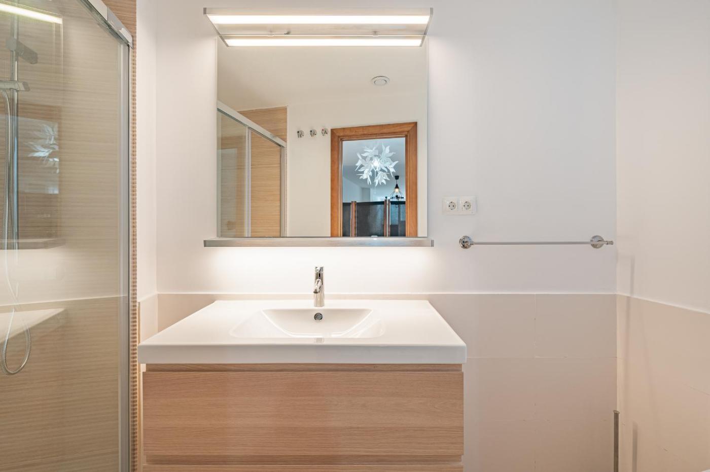 Apartamento Dúplex. Este apartamento es amplio y consta de sala de estar, 1 dormitorio independiente y baño con ducha y secador de pelo. La cocina está bien equipada con fogones, nevera, lavavajillas y utensilios. El apartamento cuenta con aire acondicionado, TV de pantalla plana, lavadora, teteracafetera, zona de estar y vistas a la ciudad. Hay 2 camas. ;