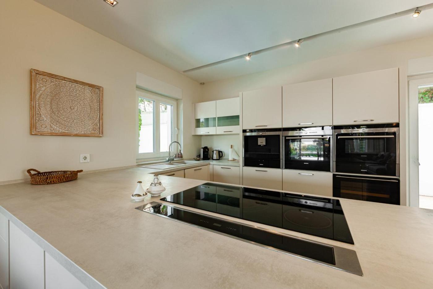 Villa Deluxe. This villas special features are the private pool and the fireplace. This spacious villa comprises 1 living room, 3 separate bedrooms and 3 bathrooms with a bath and a shower. The well-equipped kitchen features a refrigerator, a dishwasher, kitchenware and an oven. Featuring a terrace, this villa also provides air conditioning, a washing machine and a TV. The unit offers 5 beds.