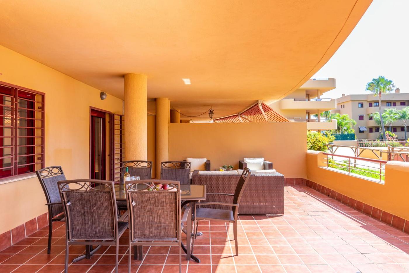 Apartamento con terraza. Boasting 3 bedrooms, this spacious apartment has 2 bathrooms with a bath, a seating area and terraceyou can relax. Guests can make meals in the kitchen that features a refrigerator, a dishwasher, kitchenware and an oven. The air-conditioned apartment features a flat-screen TV with satellite channels, a washing machine, a tea and coffee maker, a dining area as well as garden views. The unit offers 5 beds.