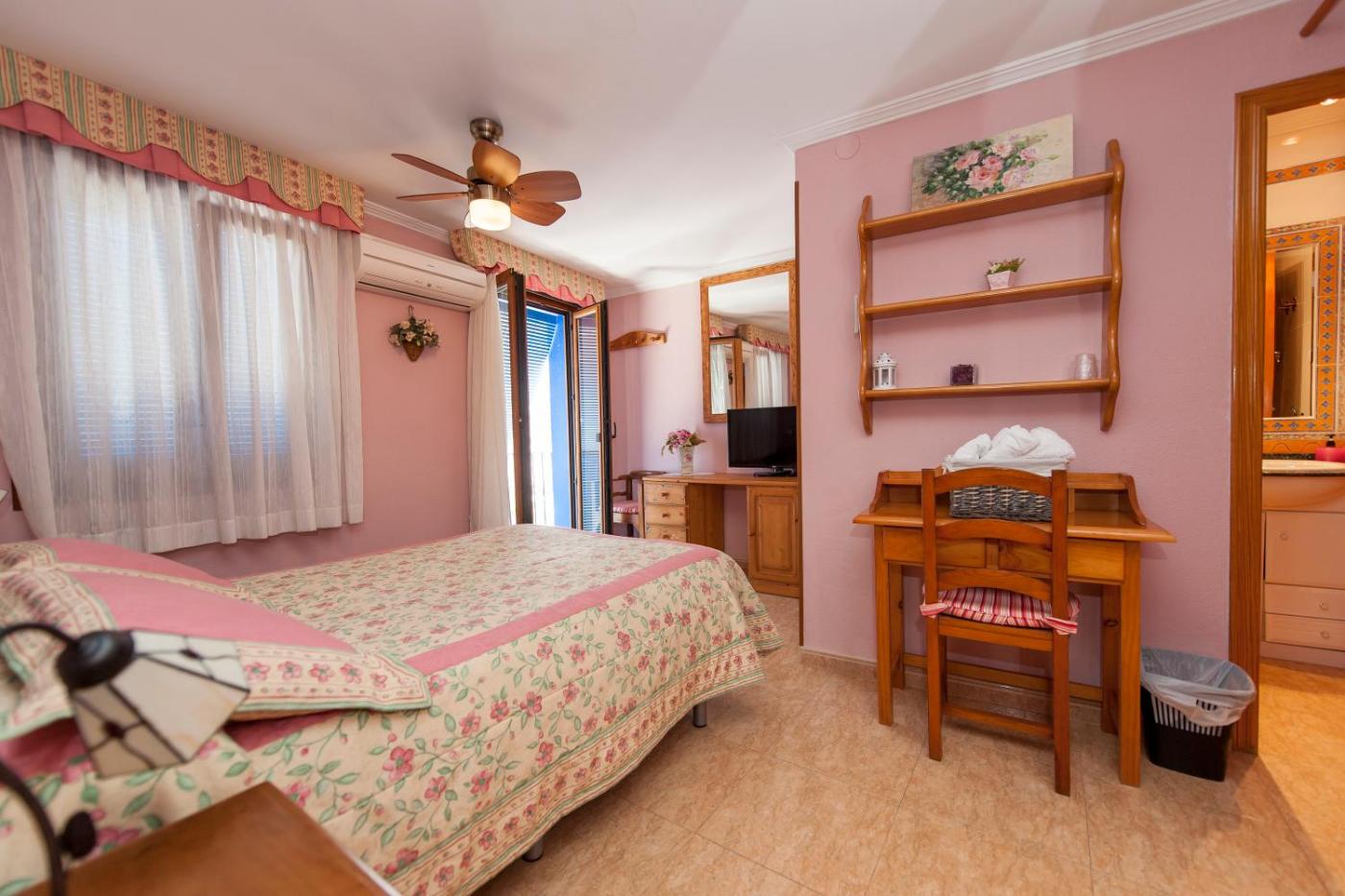 Habitación Doble con balcón. This double room is air-conditioned and has a private bathroom, tiled floors, a wardrobe and a balcony. The unit has 1 bed.
