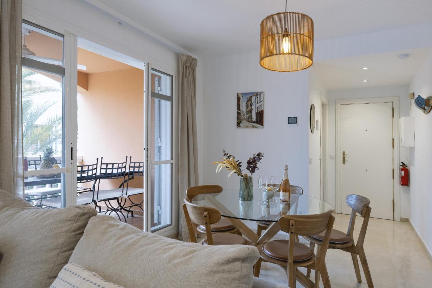 El apartamento dispone de 3 dormitorios, 2 baños, ropa de cama, toallas, TV de pantalla plana, cocina totalmente equipada y terraza con vistas al jardÃn.