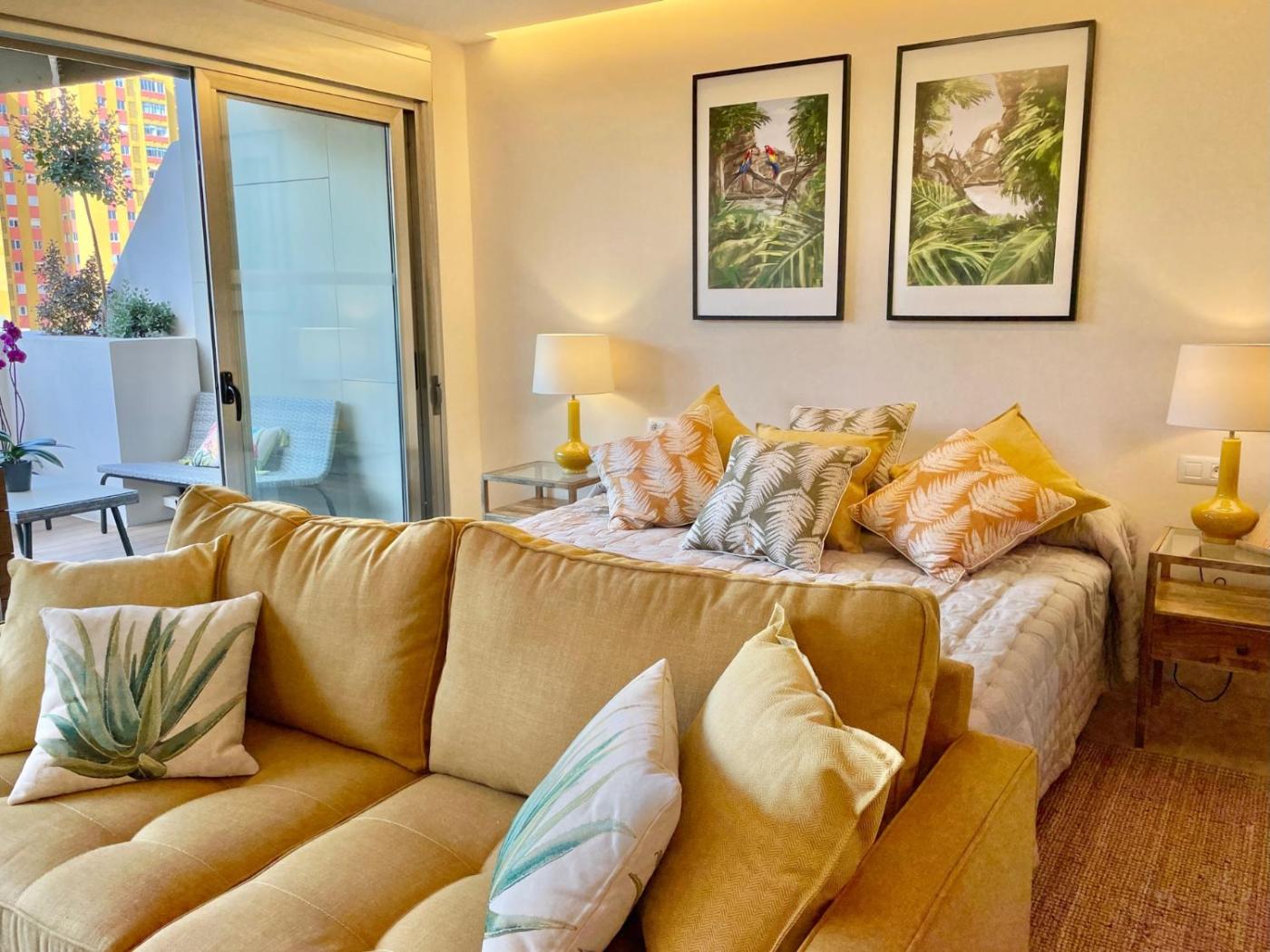 Estudio. Guests can make meals in the kitchen that is equipped with a stovetop, a refrigerator, kitchenware and an oven. The spacious studio provides air conditioning, a washing machine, a terrace with city views as well as a private bathroom featuring a bath. The unit offers 2 beds.