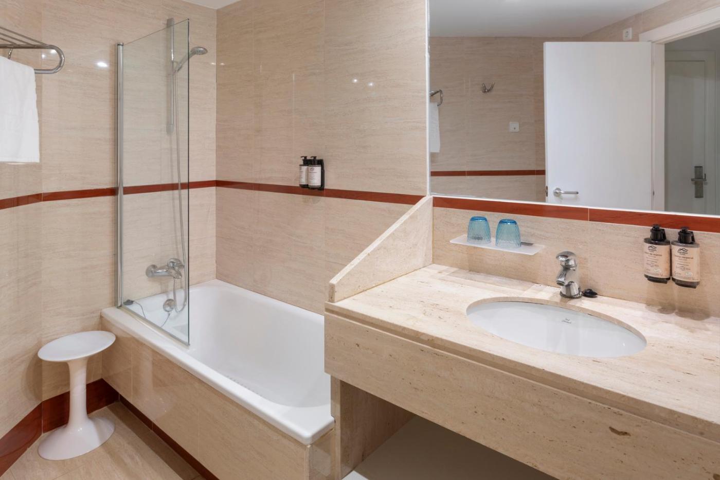 Suite Junior con acceso directo a la piscina y vistas al jardín - Selected Club. Esta suite consta de sala de estar, 1 dormitorio independiente y baño con bañera y artículos de aseo gratuitos. La suite ofrece aire acondicionado, TV de pantalla plana con canales vía satélite, minibar, acceso al salón executive, cafetera y vistas al jardín. La unidad ofrece 3 camas. ;
