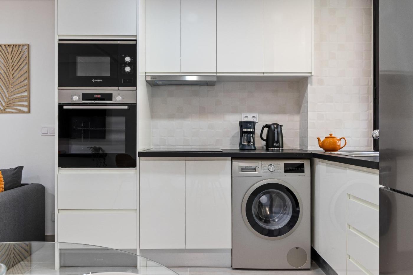 El apartamento tiene TV. El apartamento también dispone de una cocina bien equipada con horno, microondas y tostadora, y también hay secador de pelo.